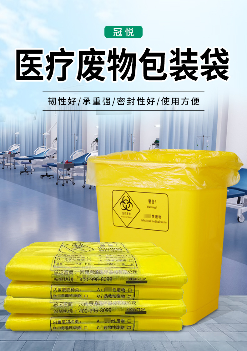 醫療廢物包裝袋要求:醫療廢物包裝袋要采用厚度符合要求的專用黃色聚乙烯(PE)包裝袋。
