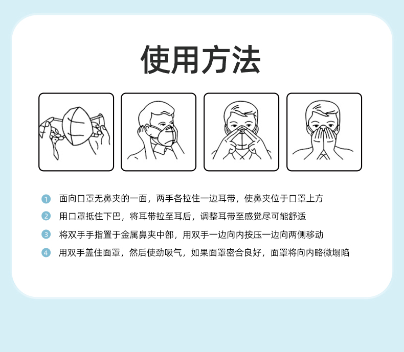 2. 戴上口罩并緊貼面部,口罩上端頭帶位放于頭后,然后下端頭帶拉過頭部,置于頸后,調校至舒適位置。