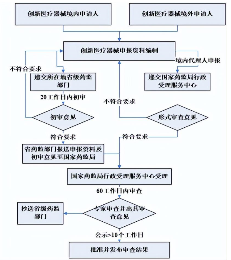 依據(jù)《創(chuàng)新醫(yī)療器械特別審查程序》及醫(yī)療器械相關(guān)法規(guī)規(guī)定,國(guó)內(nèi)外創(chuàng)新醫(yī)療器械注冊(cè)人在確保產(chǎn)品安全、有效的前提下,提交相應(yīng)技術(shù)資料及證明性文件,提出創(chuàng)新醫(yī)療器械特別審查申請(qǐng),進(jìn)入創(chuàng)新醫(yī)療器械特別審查程序的注冊(cè)申請(qǐng),審評(píng)早期介入并有專人負(fù)責(zé),在產(chǎn)品檢測(cè)、體系核查及技術(shù)審評(píng)優(yōu)先安排。