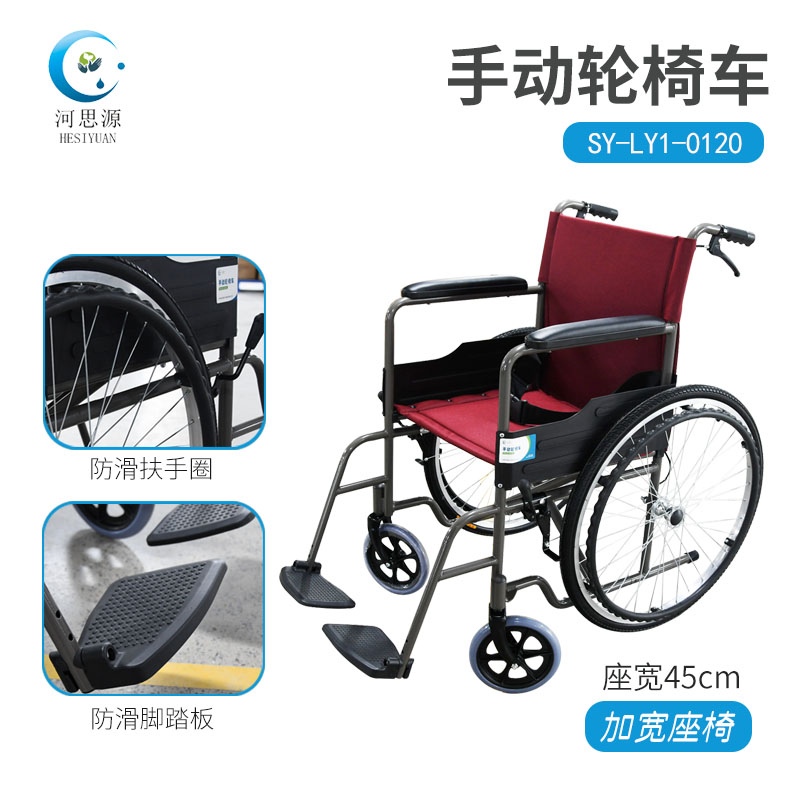 河思源新推出手動輪椅車升級款SY-LY1-0120酒紅色,與之前SY-LY1-0118相比,這款酒紅色輪椅不僅在顏色上不一樣,首先是后大輪,采用的是充氣輪胎,充氣輪椅的減震效果更好,更加的舒適。扶手圈位置,采取防滑設計。坐寬是46cm,加寬了坐寬,更加的舒適,同樣,這款輪椅是可以折疊的,方便外出放后備箱攜帶。